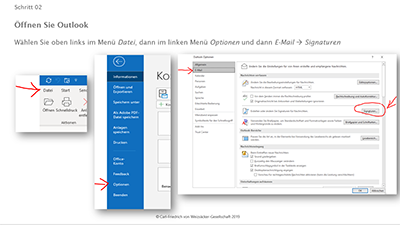 Für andere eMailprogramme gibt es auf Youtube entsprechende Videos. In die Suche den Namen des eMail-Programmes und den Begriff Signatur eingeben.